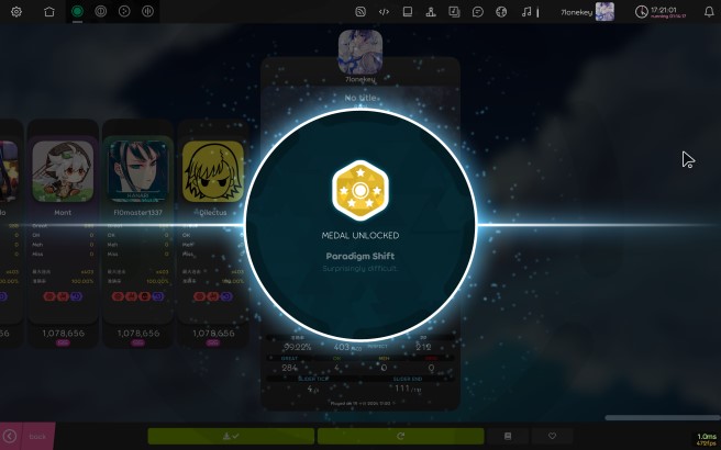 201PP5.7738063No titleReol // VINXIS[Lust's Insane]121PP5.22222967PADORU / PADORUTurbo // DeRandom Otaku[Frontier's Expert]112PP54758241Kira KiraMinato Aqua // Karen[Ayesha's Insane]108PP5.32223057PADORU / PADORUTurbo // DeRandom Otaku[Deppy's Expert]105PP51269592Bunny Panic!!!3R2 // Kyubey[Noz's Insane]103PP5.12222861PADORU / PADORUTurbo // DeRandom Otaku[FuJu's Expert]102PP5.11988748Ai no SukimaMIMI feat. Hatsune Miku // Log Off Now[Extra]96PP5.32223057PADORU / PADORUTurbo // DeRandom Otaku[Deppy's Expert]93PP4.61361935Zenryoku*Summer! TV Sizeangela // AngelSnow[Insane]82PP4.82077642MIIRO (TV Size)AKINO from bless4 // Sotarks[Reform's INSANE]